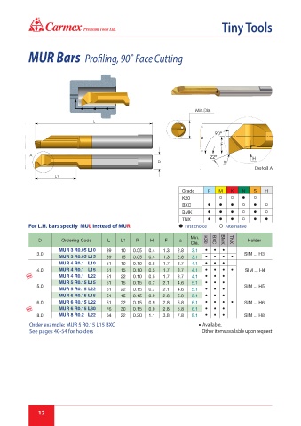 Order example: MUR 5 R0.15 L15 BXC ● Available.