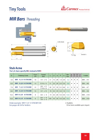 Order example: MIR 7 L22 12 STACME K20 ● Available.