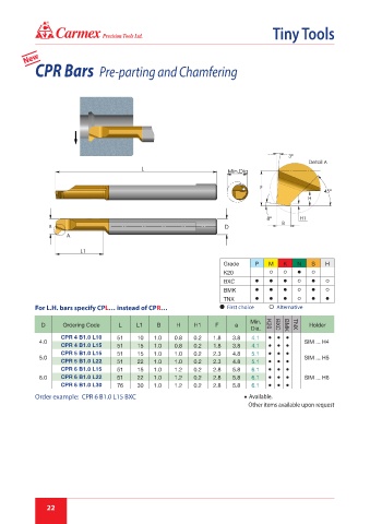 For L.H. bars specify CPL… instead of CPR… First choice Alternative
