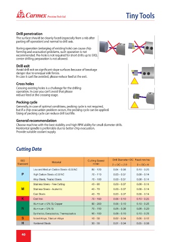 recommended. Pre-hole is not required for short drills up to 5XD,