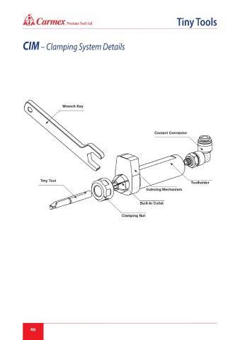 ® Tiny Tools CIM – Clamping System Details Wrench Key Coolant Connector Tiny Tool Toolholder Indexing Mechanism Built-In Collet Clamping Nut 46