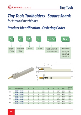 Clamping E = External M = Tiny Vertical Shank Cross Section Bar Diameter