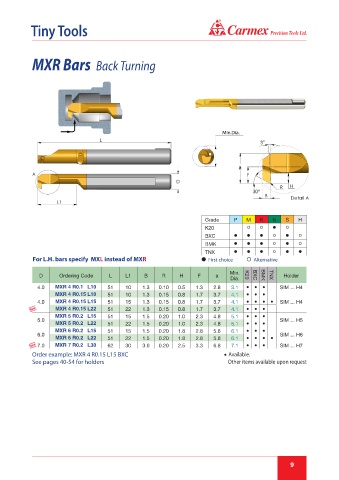 Order example: MXR 4 R0.15 L15 BXC ● Available.